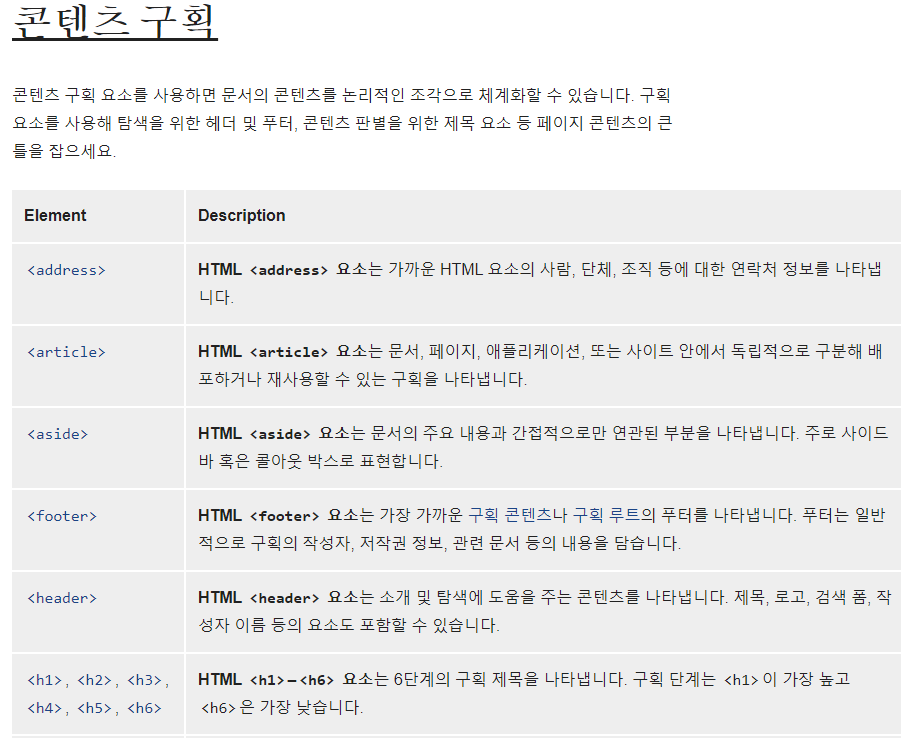https://developer.mozilla.org/ko/docs/Web/HTML/Element