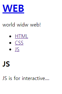 각각의 WEB, HTML, CSS, JS를 클릭하면