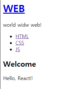 위의 코드처럼 작성하면 간편하지만 오직 <h1> Web </h1>만 출력하는 기능으로 제한된다.