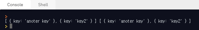 위의 코드 처럼 obj1.key='anoter key'; 이렇게 obj를 변경시