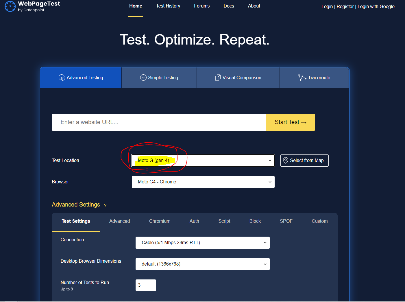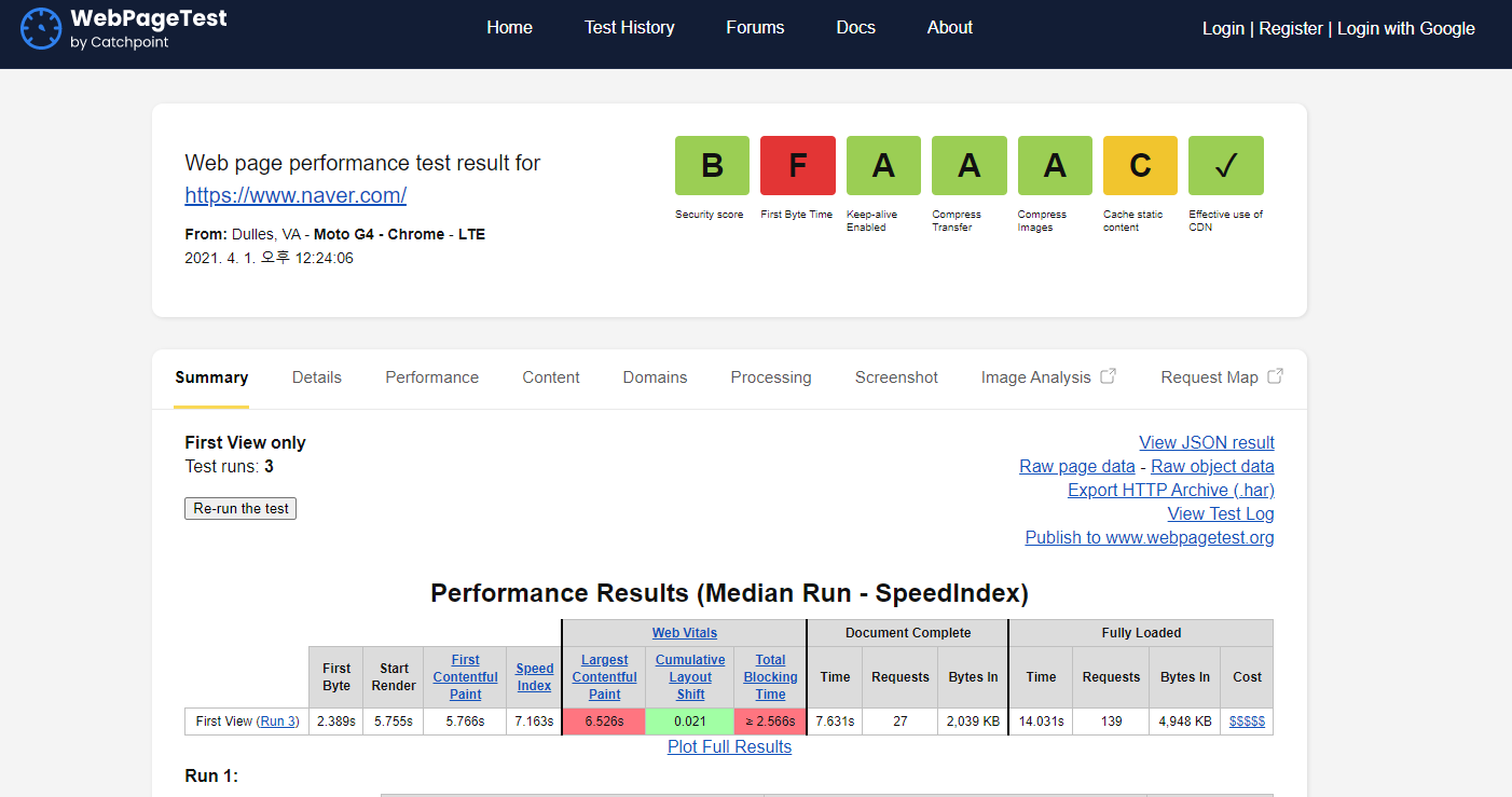 (1) WebPageTest란? : 웹 페이지의 성능을 진단하는 방법을 알려주는 페이지이다.