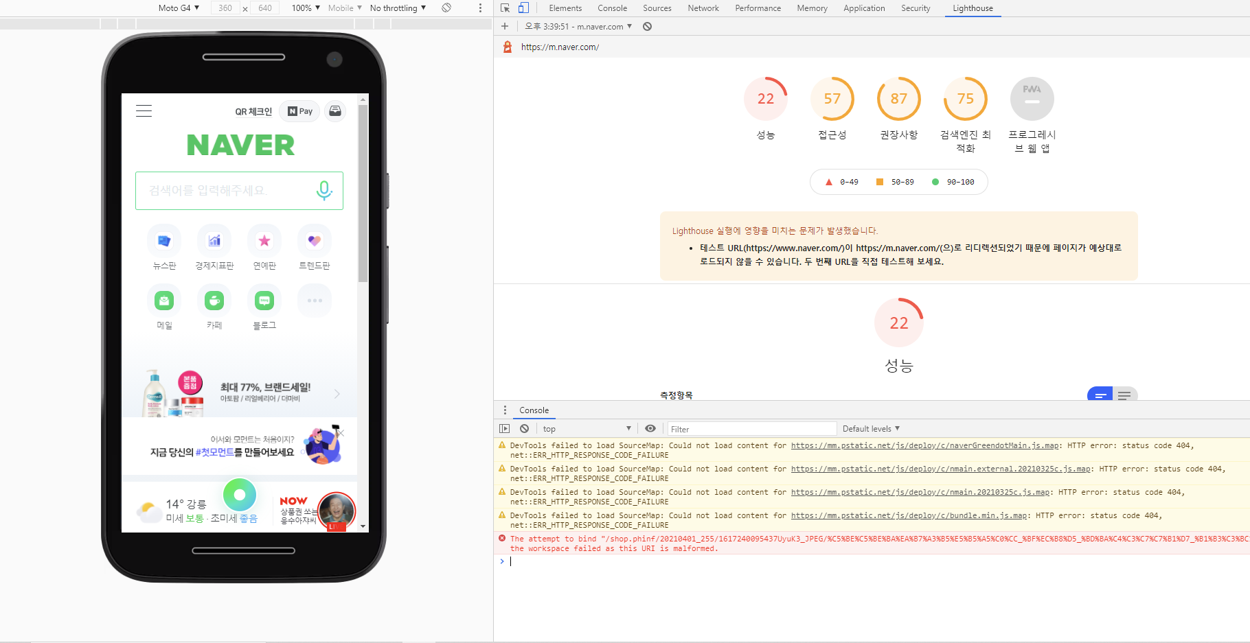 (2) 모바일 사이트 성능 측정하기 :